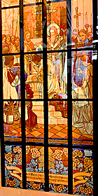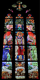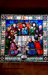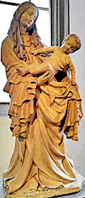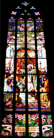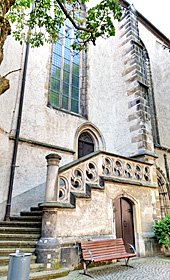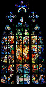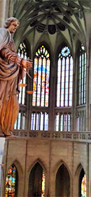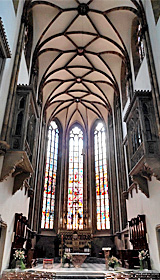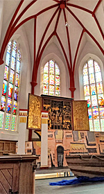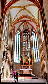 ゴシック様式で、祭壇の後ろに古いステンドグラス。ドイツではこれは貴重かも。ただ保存状態はいまいちで、グリザイユが消えてる部分も…