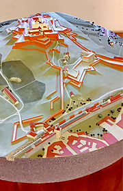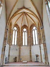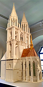 丘のてっぺんに続く城門 マイセン大聖堂 教会脇の回廊 この部分はルネサンス様式 ステンドグラスの残る祭壇 博物館の模型 お庭と地域の植物解説のパネル