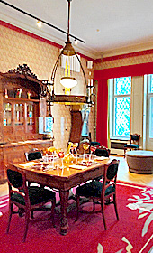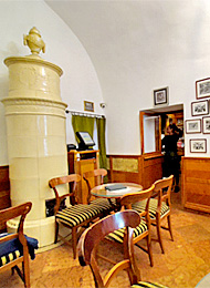カフェシュペール 新聞置き場のビリヤード台 昔の電話室 ザッハートルテ