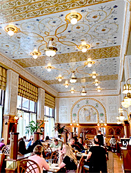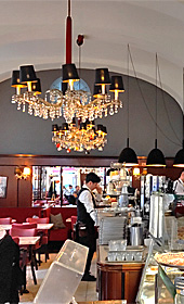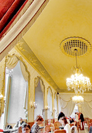 カフェサヴォイも洗練された内装で、高い天井の模様がマニエリズムっぽくて面白いです。