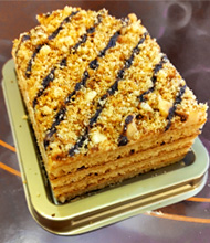 メドヴニークはスーパーでも箱入りのを売ってて、こちらの方が甘めで蜂蜜の味も強かったです。(食べかけの写真ですみません。)