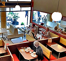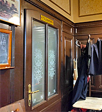 電話室の表示もそのままに…(中に公衆電話があるのかは不明)、内装もクラシックで落ち着いていて、昔のカフェ文化の名残を感じられました。