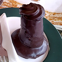 以前ドイツとチェコで食べたお気に入りのケーキ…ラムボールみたいな生地を塔の形にしてチョコでコーティングしたものです。