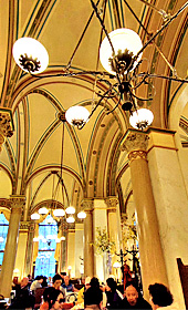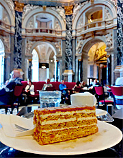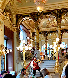 でも断られるわけではなく、待てば入れました。ネオゴシック風の豪華な内装で、ときどき生演奏も入る、素敵なカフェでした。