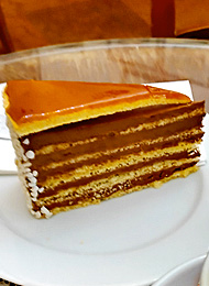 ドボシュトルテはハンガリーの定番ケーキ。おいしかったのでもう一個お替り。クレメスは中欧やドイツでよく見かけるケーキで