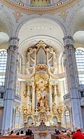 カナレットビューからのドレスデン旧市街 聖母教会とルター像 聖母教会祭壇 ドレスデン城と旧宮廷教会を繋ぐ橋