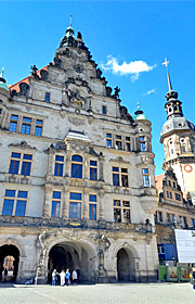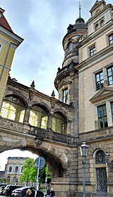 ゲオルゲントール門とハウスマン塔 ドレスデン城とタッシェンベルク宮を繋ぐ橋 君主の行進 ツヴィンガー宮庭園 ツヴィンガー宮の堀と橋 堀の緑地のハイイロガンの親子