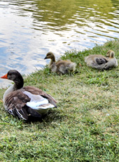 美術館がいくつも入っているツヴィンガー宮殿の堀の周りは緑地になっていて、ハイイロガン、サギ、コクマルガラスなどがいました。