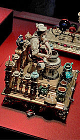 馬具もあって、パレード用の鞍とか華やかです。その他、寄木細工のゲーム版や象牙の駒なども豪華絢爛。貴重な古いカードもありました。