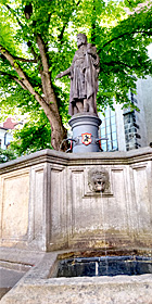 マルクト広場の聖母教会はマイセン磁器のカリヨンで有名。フランシスコ会修道院教会だった博物館の前には、小さな広場に可愛い泉があります。