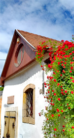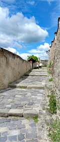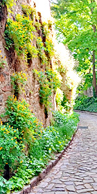 町の西側と北側は丘陵地で、石畳の坂や階段が多いのですが、あちこちに緑地があり、石壁にはあちこち野の花が咲いて、とってもきれい。