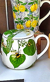 マイセンではないのですが、町のお店のウィンドウでかわいい食器を見ました。マルハナバチがたくさん飛んでる蓋つきマグ。