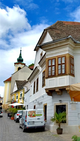 ルスヴルム菓子店は1827年創業のマーチャーシュ教会の近くのカフェ。老舗だけど、豪華というよりかわいい感じの、レトロなお店です。
