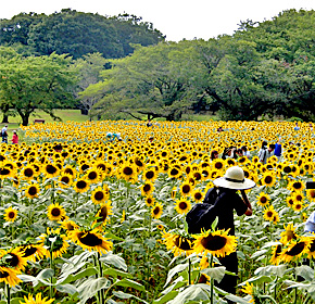 トケイソウ サギソウ ヒマワリ畑 ハス タカサゴユリ? 台湾サッコウフジ