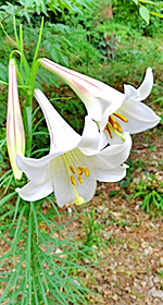 日本庭園の丘の上の東屋に行く道に、タカサゴユリがたくさん咲いてましたが、あれは交雑種なのかなあ…