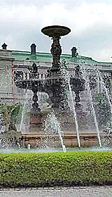 あまり報道されない、裏側のお庭も素敵でした。大きな噴水があって、贅沢に水を噴き上げてました。