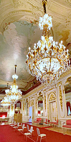 赤坂迎賓館外観 お庭の噴水 七宝画 尉鶲に牡丹 花鳥の間天井画 羽衣の間のピアノ 羽衣の間のシャンデリア