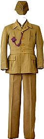 戦中に定められた男性国民服、女性標準服。もんぺも標準服の一種でした。戦争末期には、召集されると国民服が軍服代わりだったとか…