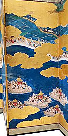 色絵寿字宝尽文八角皿17C末-18C初 貝尽蒔絵硯箱18C 日吉山王祇園祭礼図屏風16C 折りたためるミニ屏風 東こぎん 身頃19C 近代欧米ガラス17-20C ガラス片東地中海沿岸前14C-14C